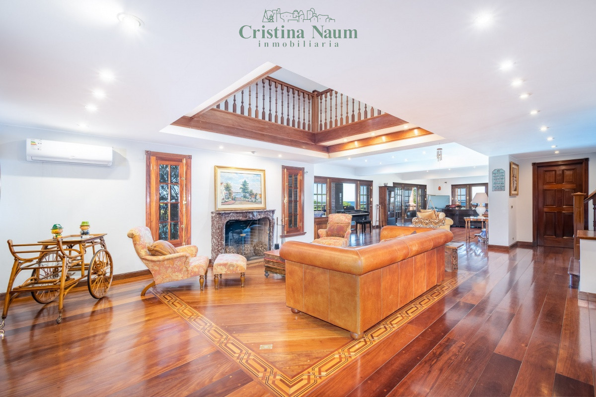 Estilo europeo de construcción tradicional . con tres niveles que comprenden desde un subsuelo con grandes espacios de garaje en subsuelo, gym , home cinema, vestuarios , en primer nivel el increíble living, comedor , office, cocina con isla y mesa desayunador,toilette y un dormitorio en suite. Rodeada de galerías al mar que conectan out-in y nos dan vista en todo momento, en el tercer nivel encontramos su mega master suite con dos walk - in closet y tres suite más . bbq area con piscina climatizada interior incluida, puente vidriado a la piscina . La propiedad cuenta con extras como dos departamentos completos de huéspedes. En el increíble jardín encontramos una piscina de dimensiones con distintas situaciones en las que hasta podemos nadar por debajo de un puente en el que por medio de un blindex a la bbq conecta estos dos ambientes.
