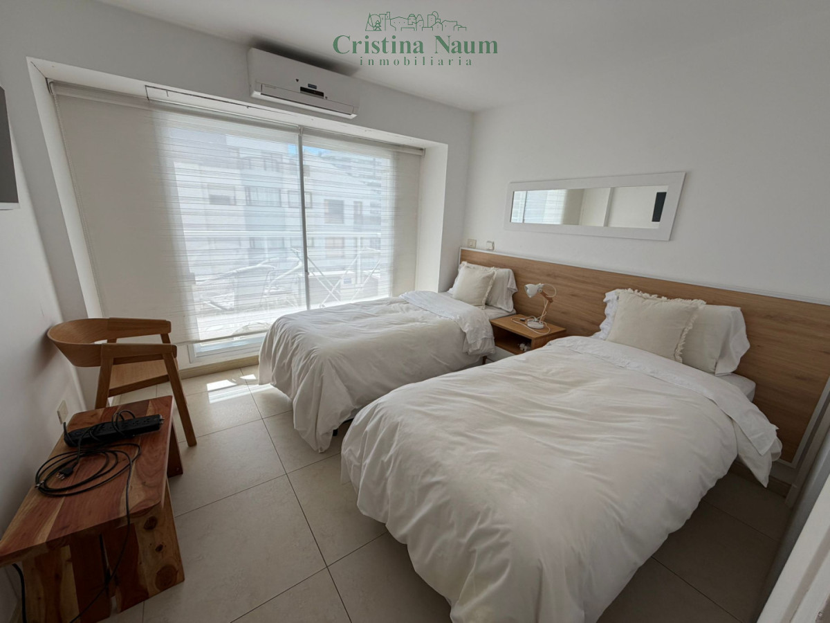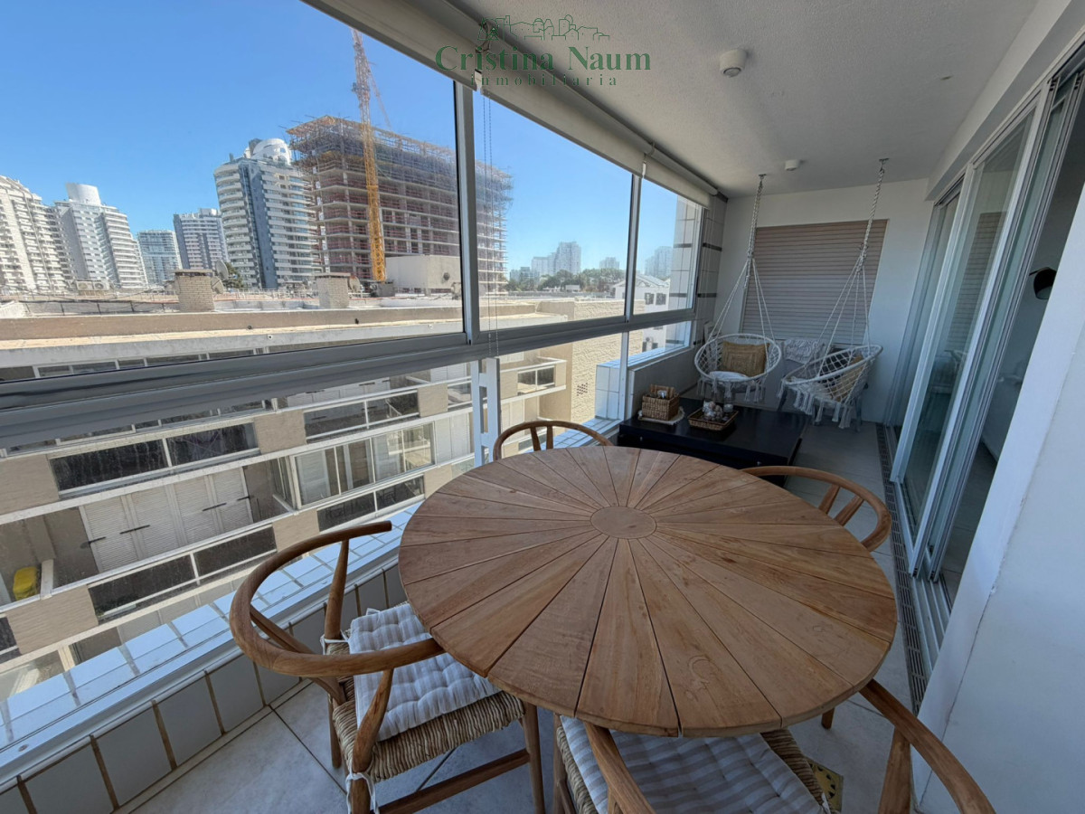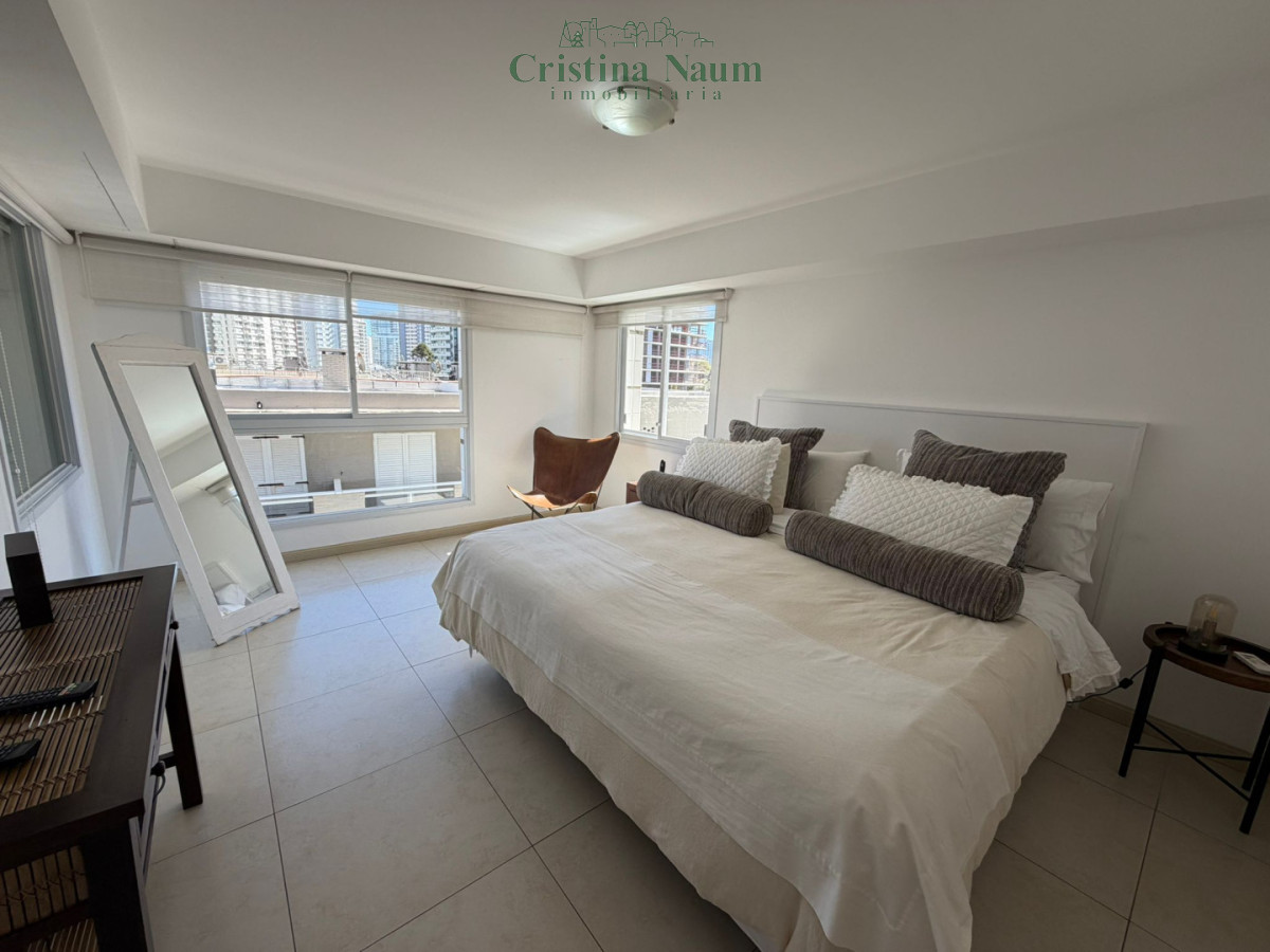 Amplia planta de 2 dormitorios, dependencia de servicio, toilette, suite, living-comedor, comedor diario, lavadero y parrillero propio en la terraza. Incluye aire acondicionado y amueblado.