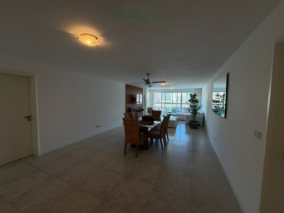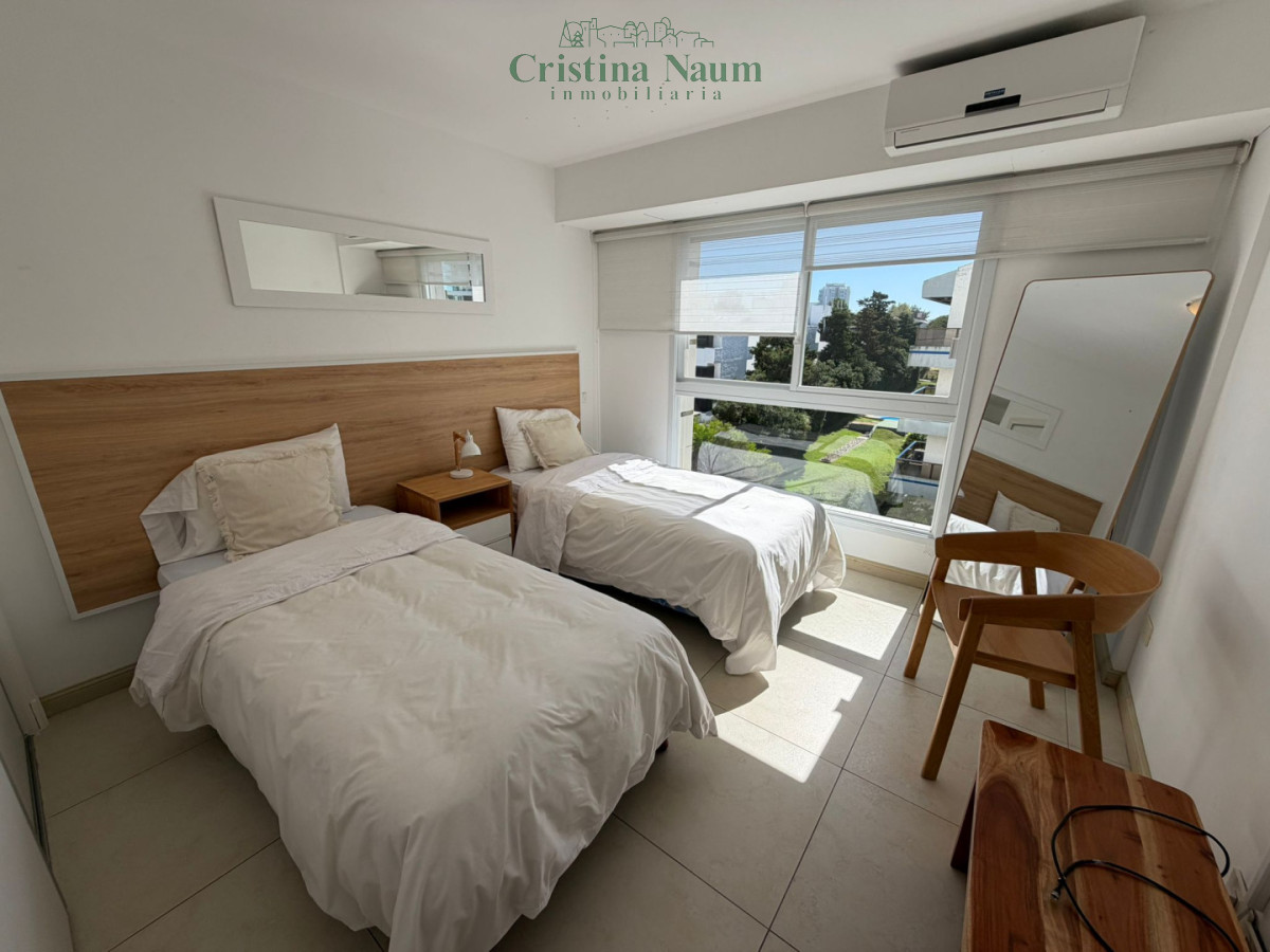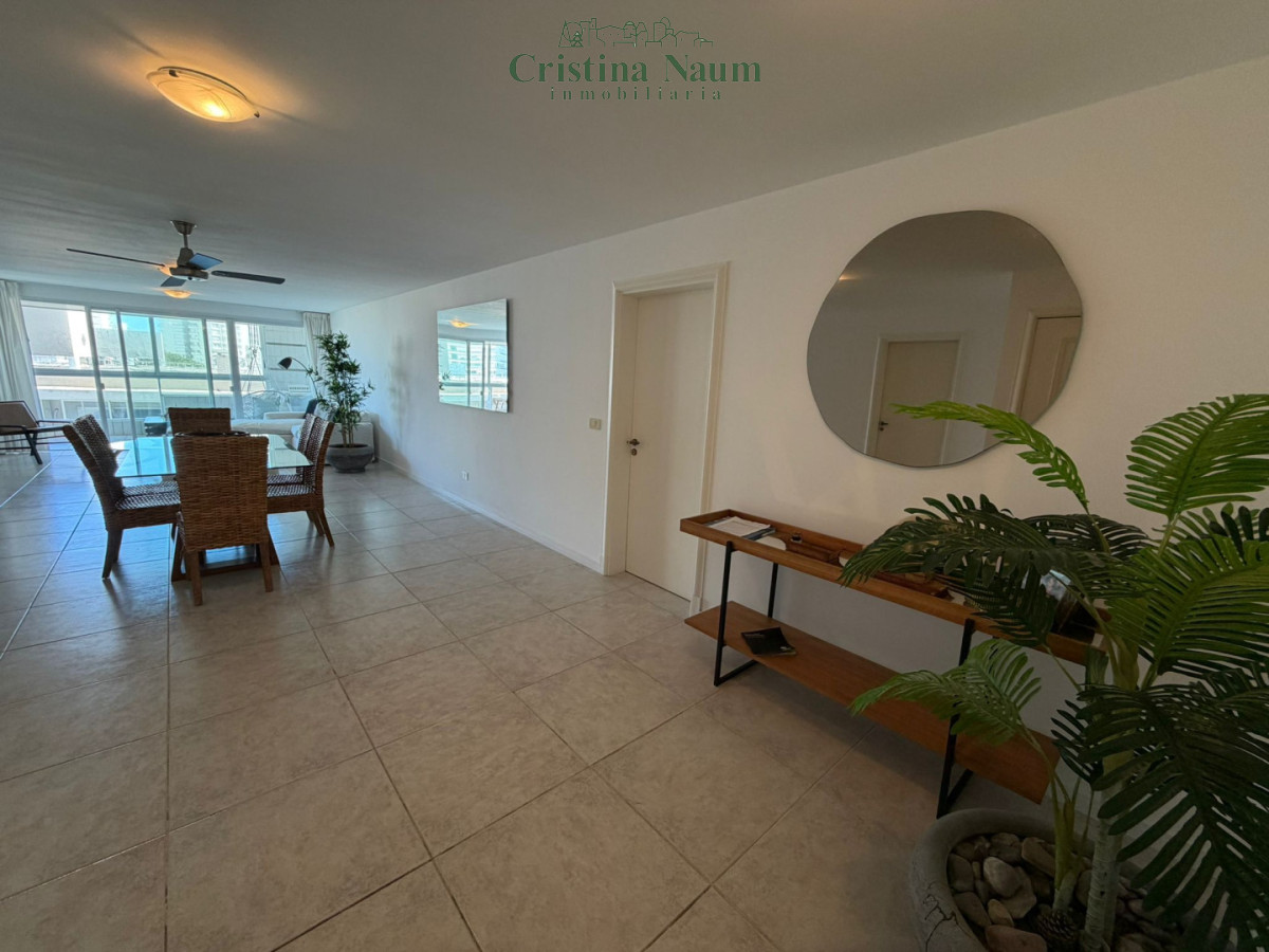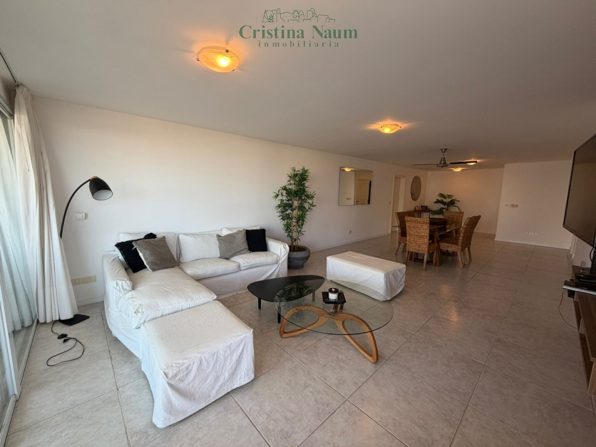 Amplia planta de 2 dormitorios, dependencia de servicio, toilette, suite, living-comedor, comedor diario, lavadero y parrillero propio en la terraza. Incluye aire acondicionado y amueblado.