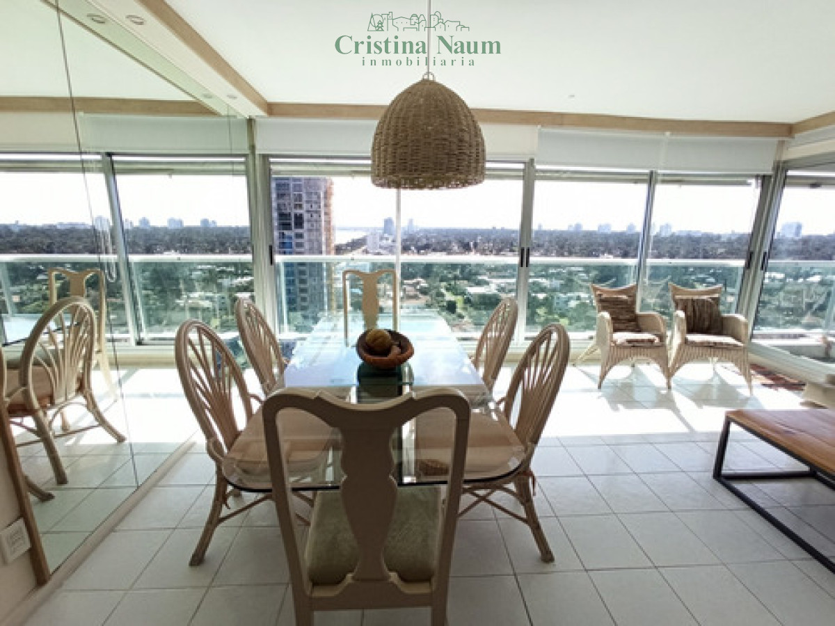 Apartamento con vista a Punta Ballena, cuenta con 2 dormitorios, 2 baños, living-comedor con balcón, cocina interna y garaje.
