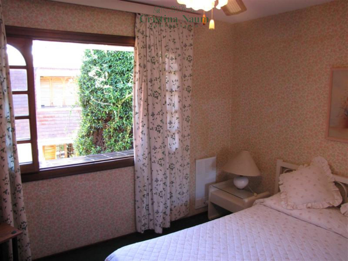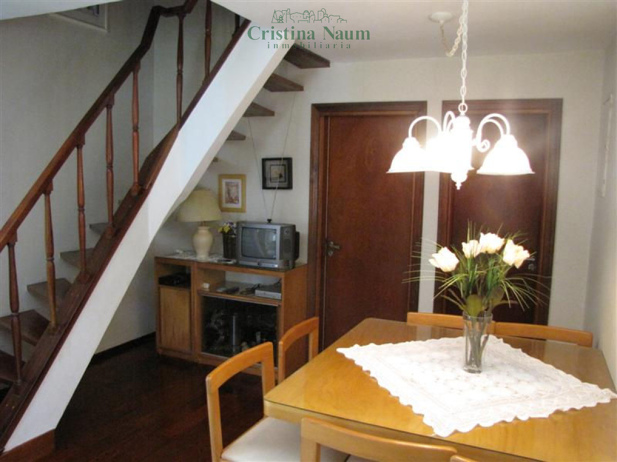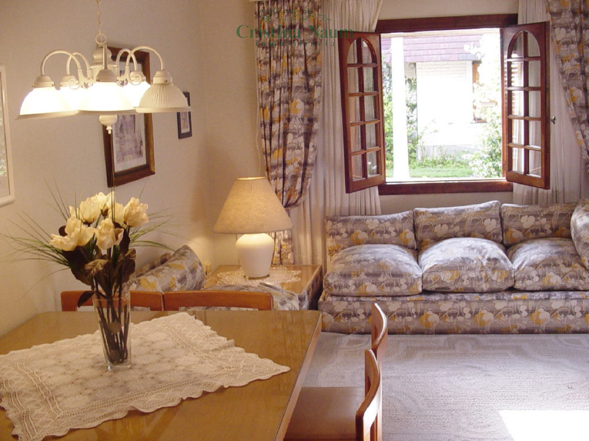 Este acogedor dúplex cuenta con un living-comedor con piso entarugado y hogar a leña, además de una amplia cochera cubierta con ducha y parrillero. En la planta alta, dispone de 2 dormitorios: uno con 3 camas y otro con cama matrimonial, ambos con carpintería de cedro y placares de pared a pared y del piso al techo. También tiene 1 baño con bañera.