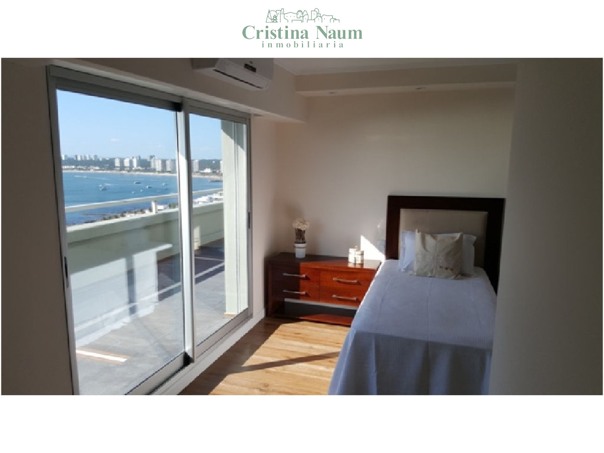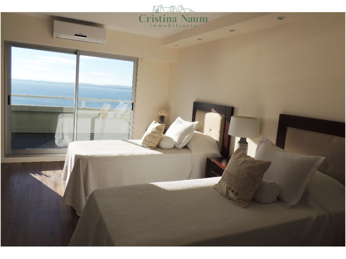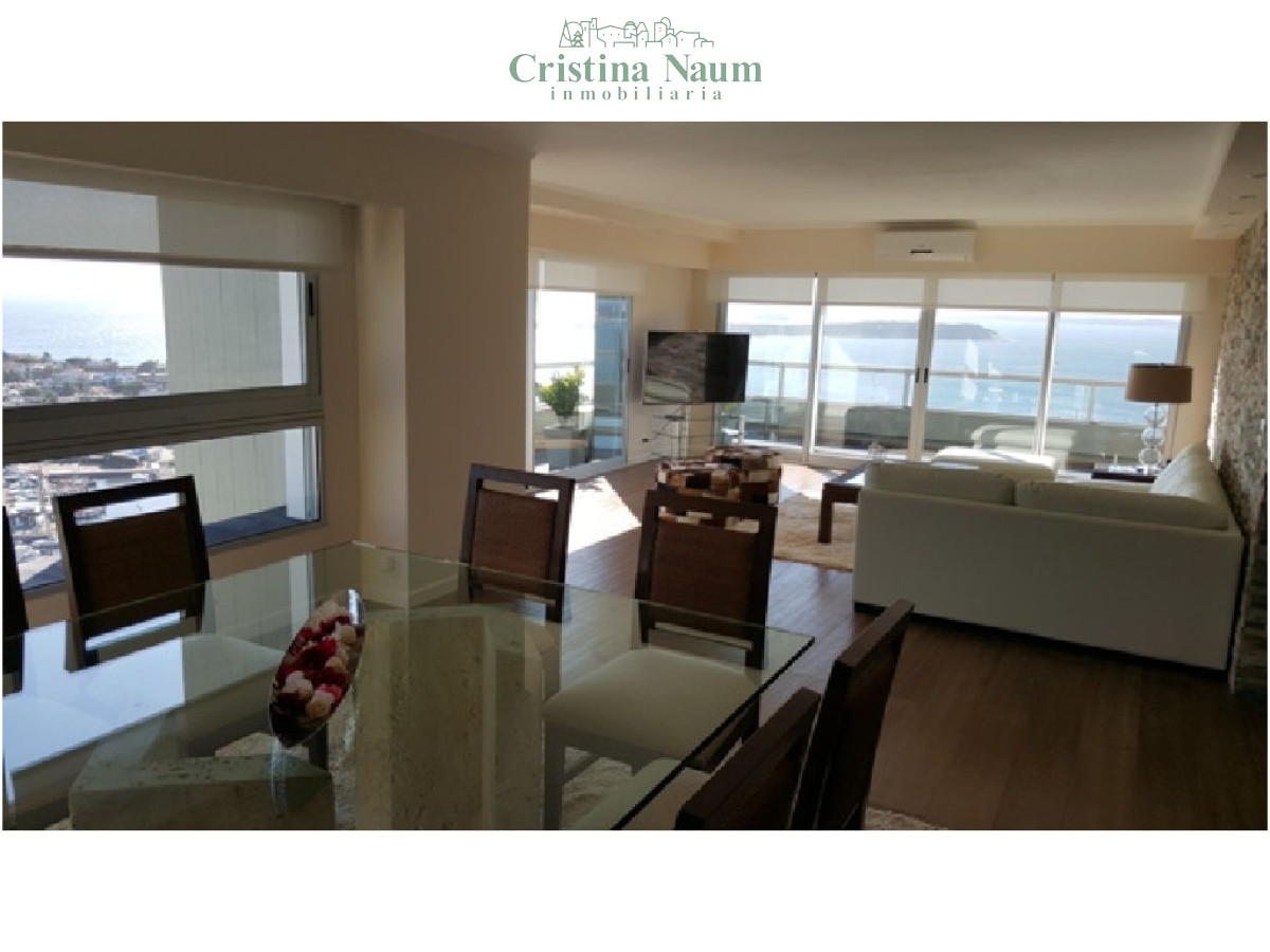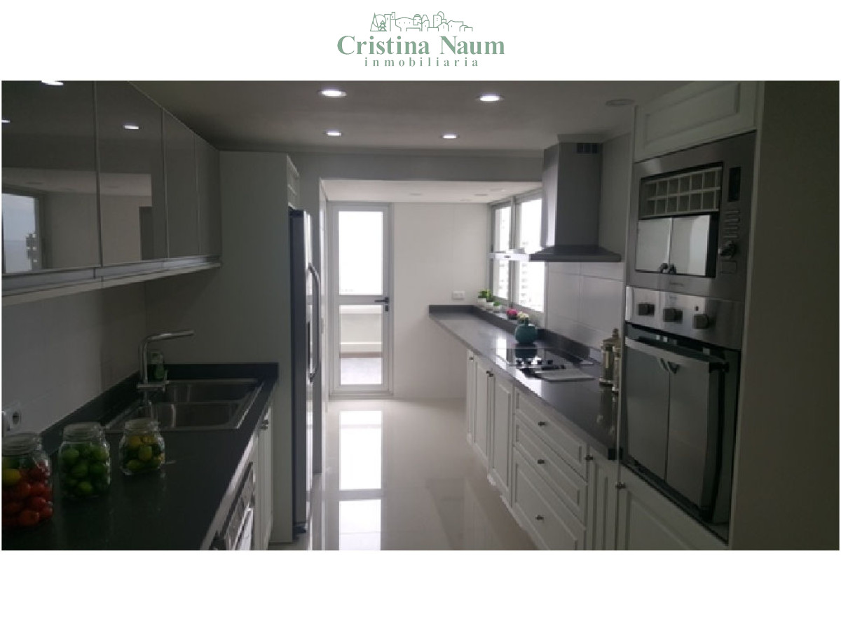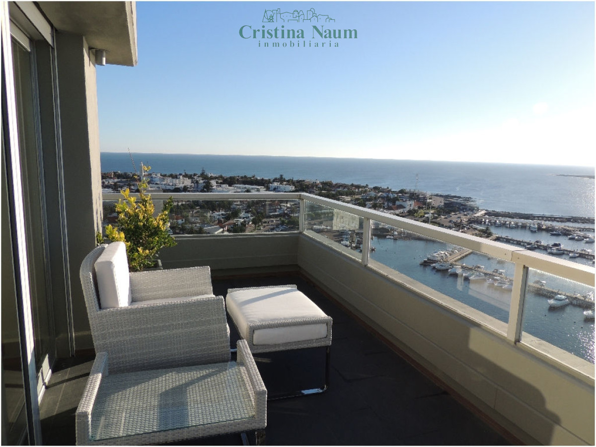 Este moderno apartamento de 200 m² (135 m² cubiertos + 65 m² de terraza) está ubicado en una torre de categoría, a pasos del centro financiero, gastronómico y náutico. Cuenta con living-comedor, toilette, 2 dormitorios en suite con doble placard, y una generosa terraza con vista al mar. Cocina con desayunador, lavadero, cochera cubierta y baulera. Equipado con pisos de roble, mesadas de silestone, porcelanato español, grifería FV, línea Sony y Ariston, iluminación LED, aire acondicionado, persianas y cortinas rollers automatizadas, y cerramientos DVH.