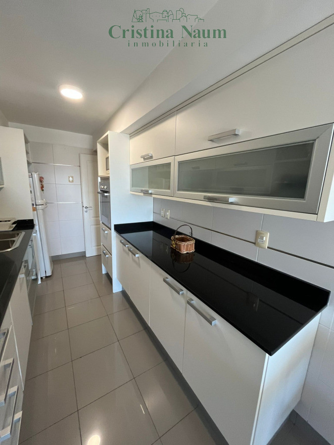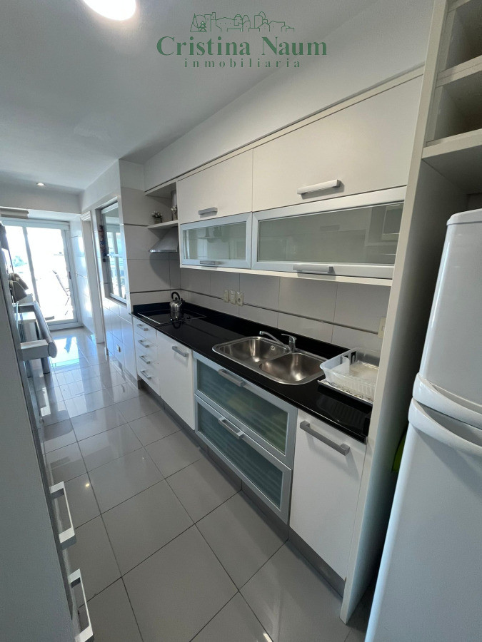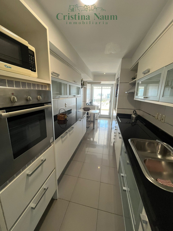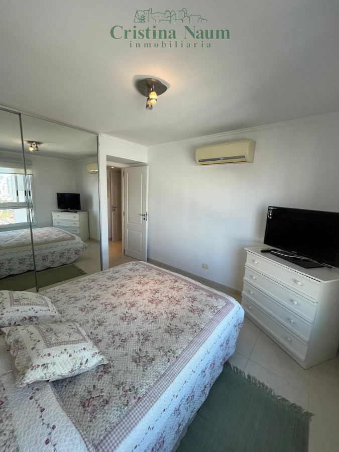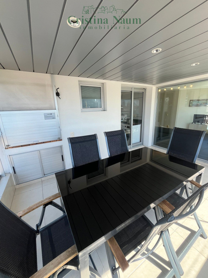 Amplio apartamento con living comedor con terraza vidriada que puede abrirse con parrillero propio y vista al mar (108m2), 3 dormitorios, uno en suite, toilette, cocina con lavadero que conecta con la dependencia de servicio. Garage para un auto. Aire acondicionado en todos los ambientes, losa radiante en los baños.