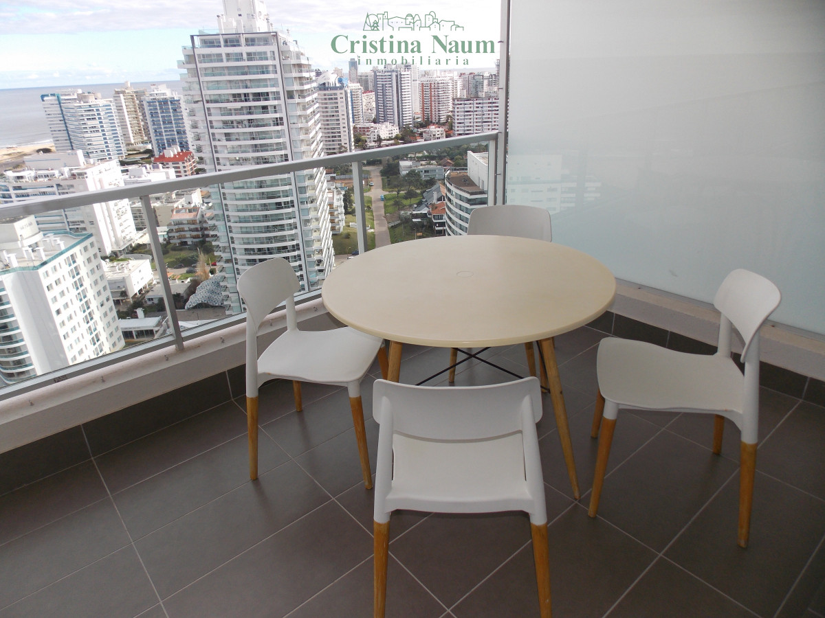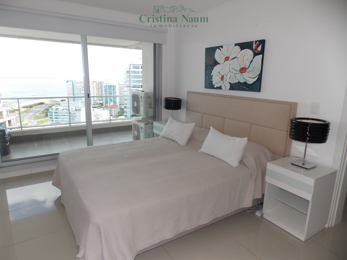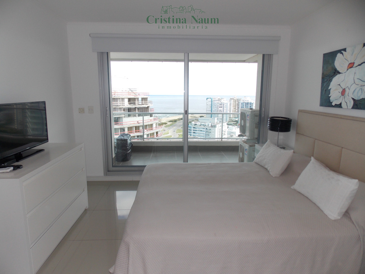 Ubicado en una zona privilegiada, este apartamento de 72 m² ofrece un amplio living-comedor con balcón y una fabulosa vista al mar. Cuenta con dos dormitorios, uno en suite, y dos baños. Cocina americana. Garage, loza radiante sectorizada y aire acondicionado en todos los ambientes.