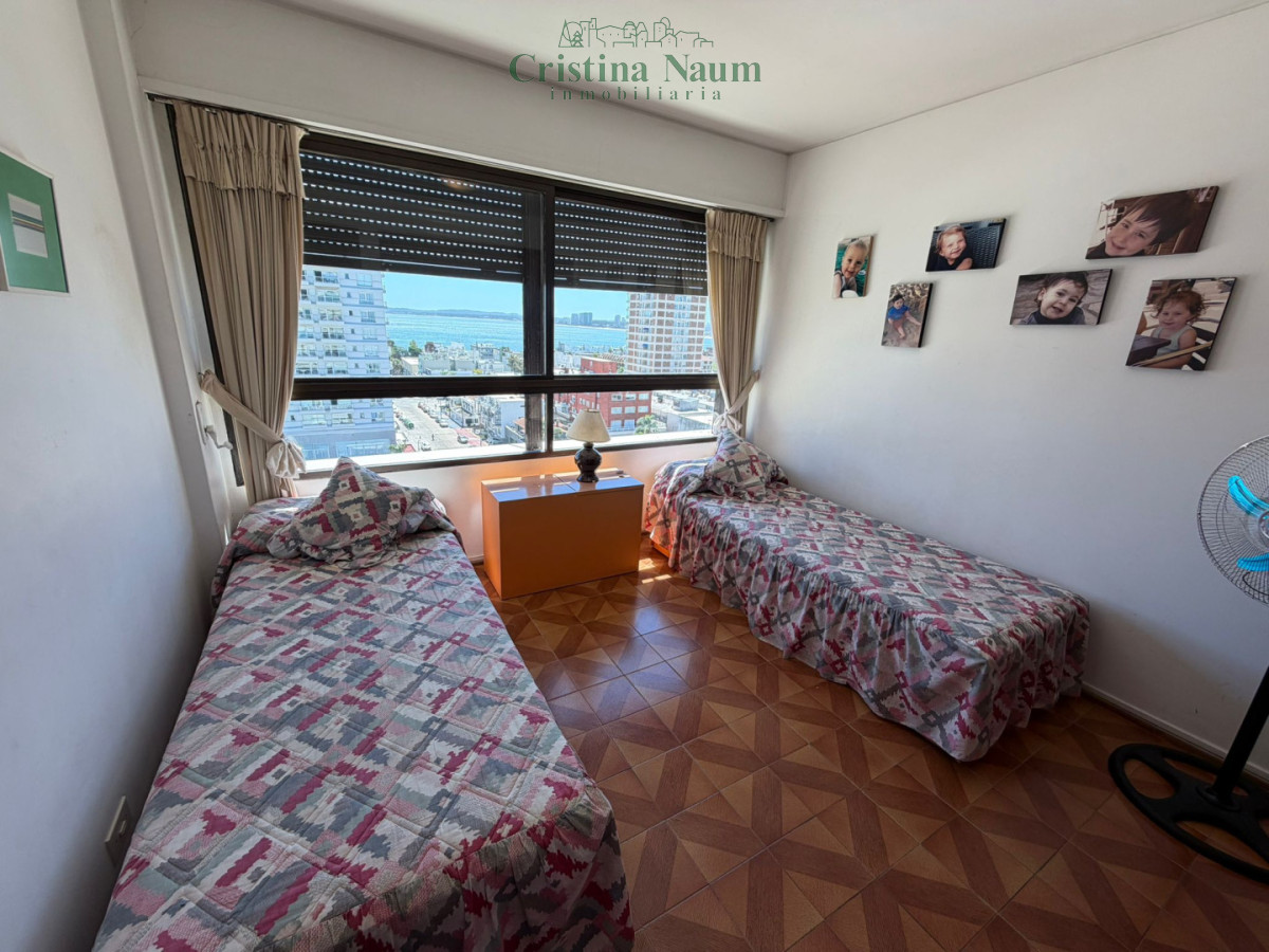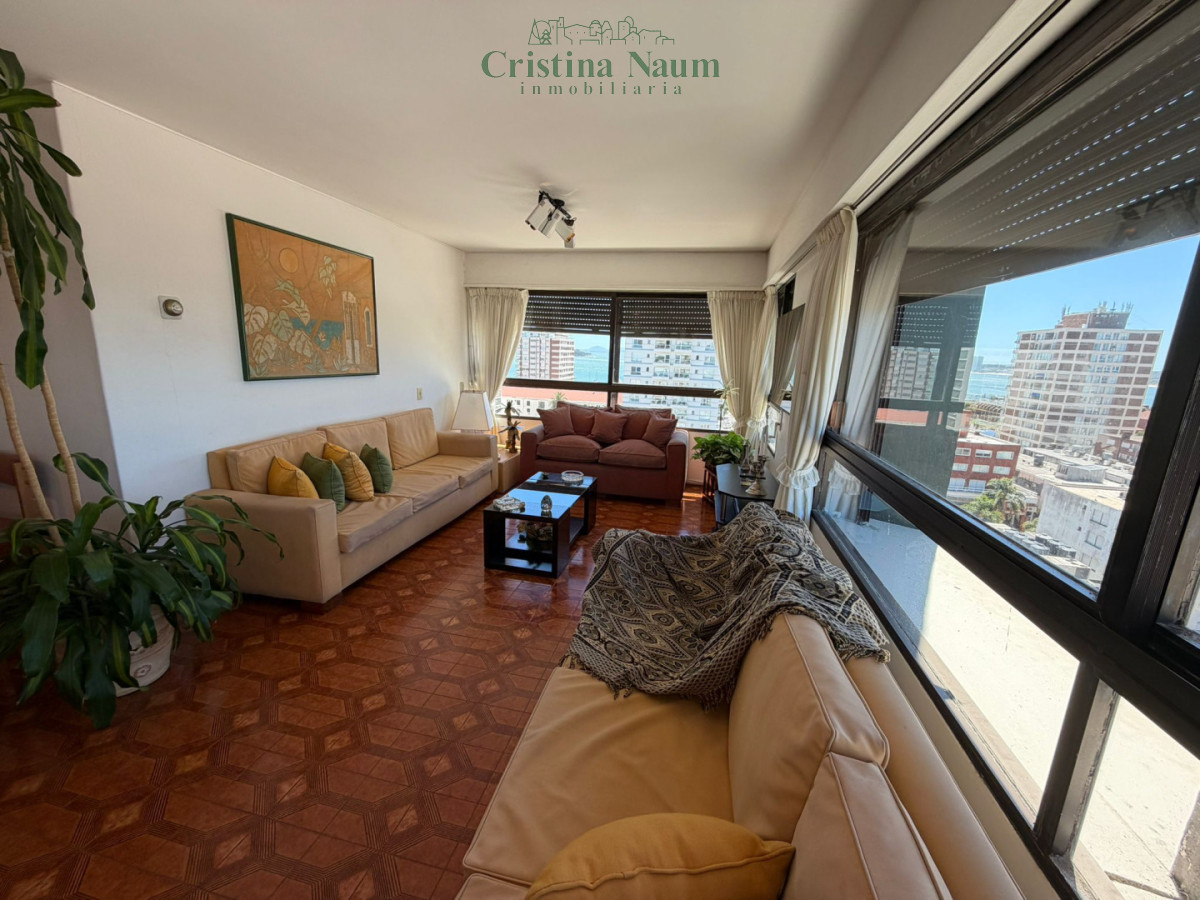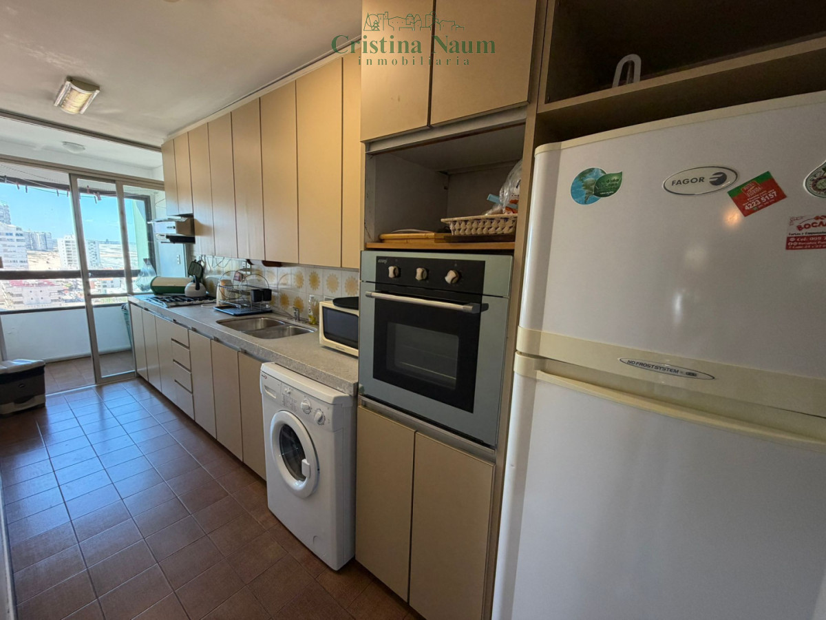 Apartamento de 105 m² con amplios y luminosos ambientes. Cuenta con living-comedor integrado, un espacio adicional que puede ser un tercer dormitorio o escritorio, separado por una puerta corrediza con baño completo. 2 dormitorios (principal en suite) y 2 baños. Cocina con comedor diario y lavadero independiente. Cuenta con dependencia de servicio con baño, garaje y baulera.