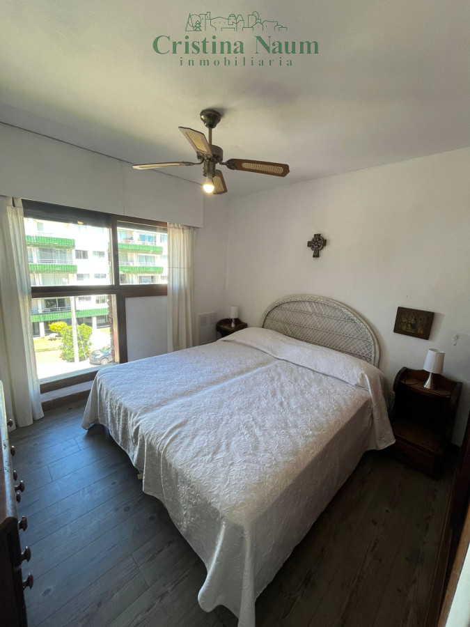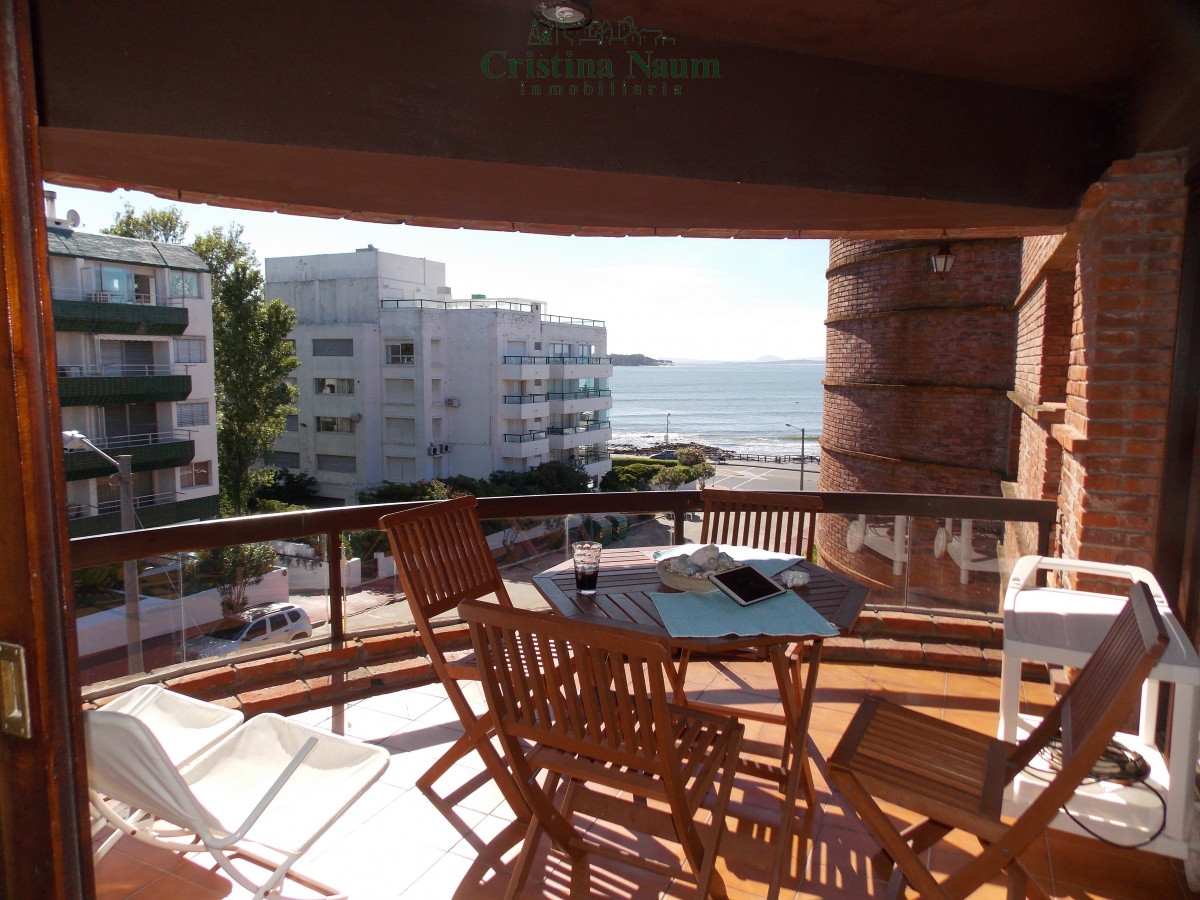 Cómodo apartamento con dos dormitorios (uno en suite) y 2 baños, living-comedor con balcón-terraza con vista al mar. El edificio ofrece servicio de mucama.