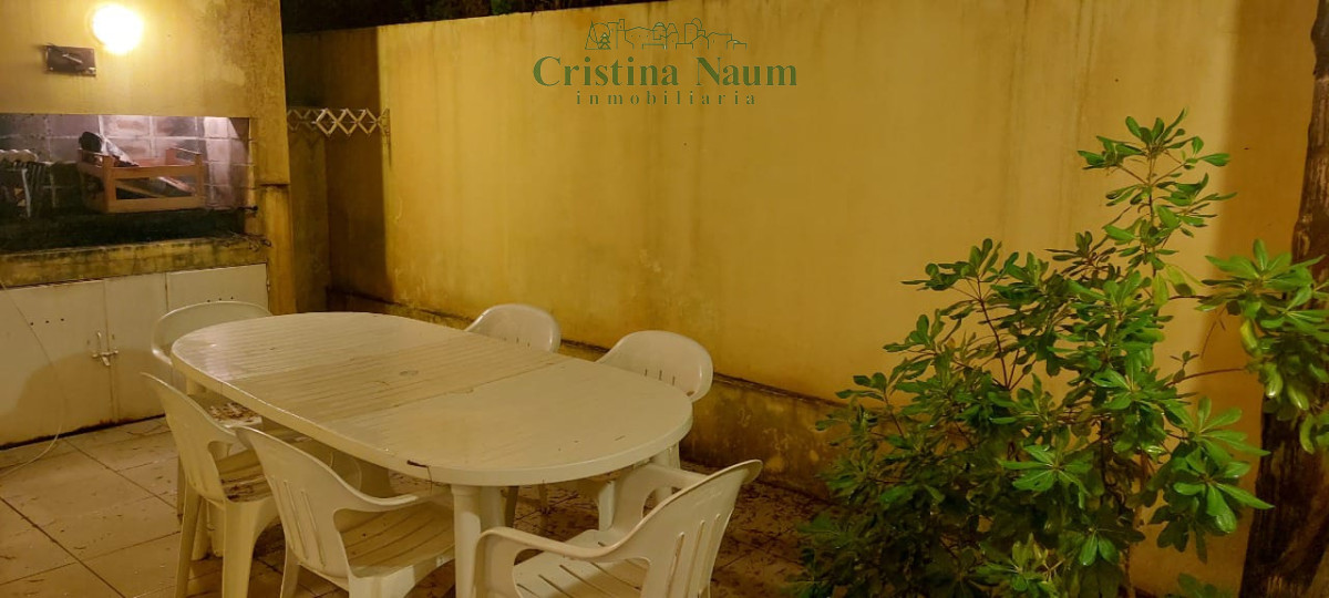 Patio con mesa y parrillero , lavadero semi cubierto