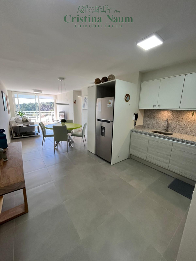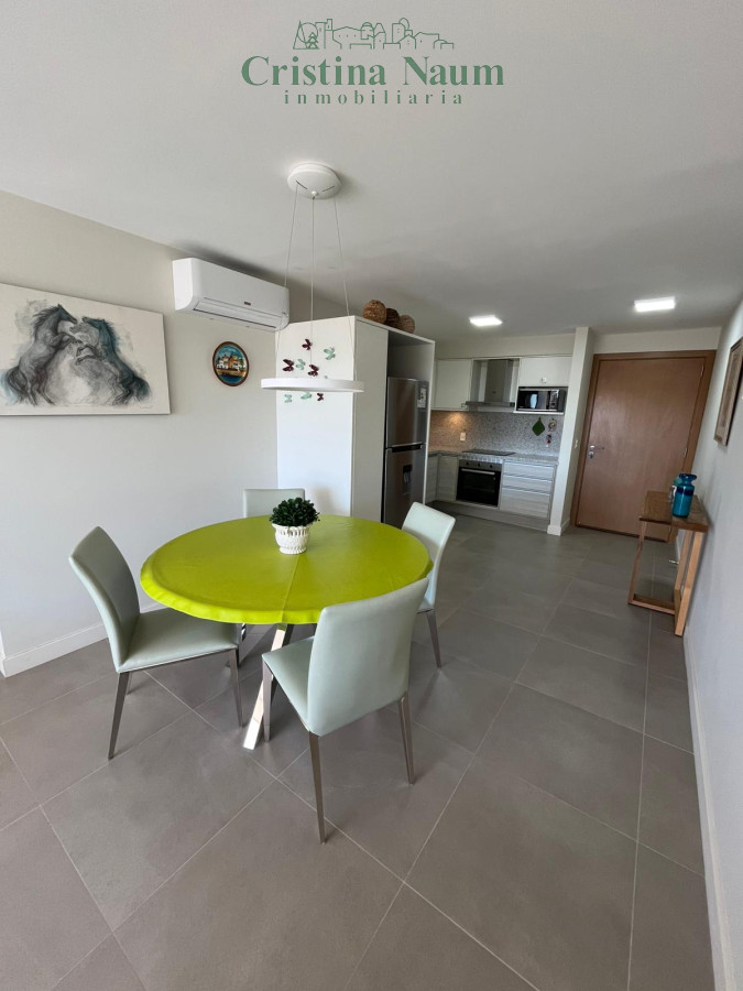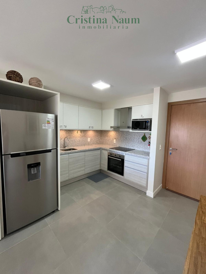 Living comedor y cocina integrada (aire acondicionado), balcón abierto, toilette y dormitorio en suite con vestidor (aire acondicionado). Garaje. Losa radiante eléctrica sectorizada.
