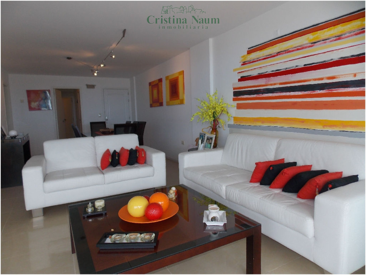 Amplio y cómodo apartamento de 3 suites más dependencia de servicio, con living-comedor que se conecta a un balcón terraza con vista al mar.