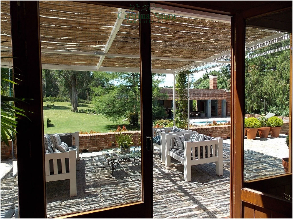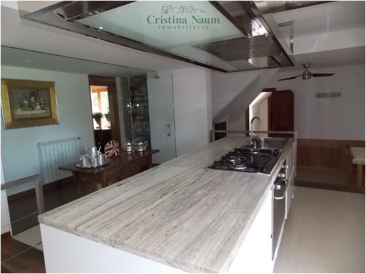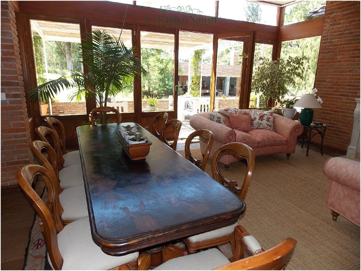 5 suites, toilette, biblioteca, cava, living, comedor, cocina con comedor diario, 2 dependencias de servicio, jardín de invierno, lavadero, barbacoa con baño y kitchenette, piscina climatizada.