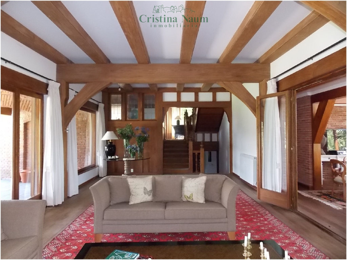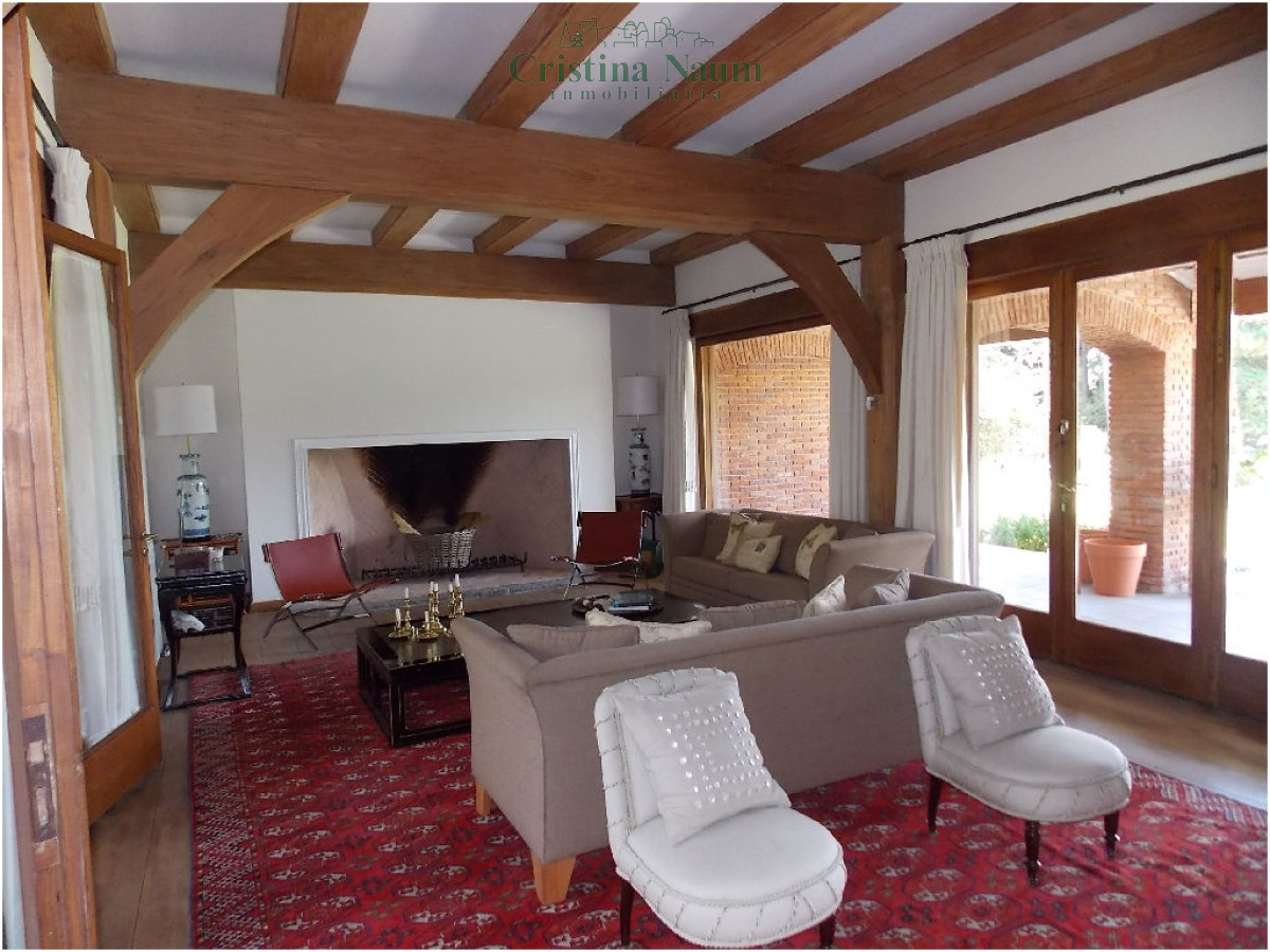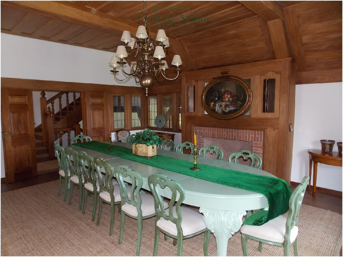 5 suites, toilette, biblioteca, cava, living, comedor, cocina con comedor diario, 2 dependencias de servicio, jardín de invierno, lavadero, barbacoa con baño y kitchenette, piscina climatizada.