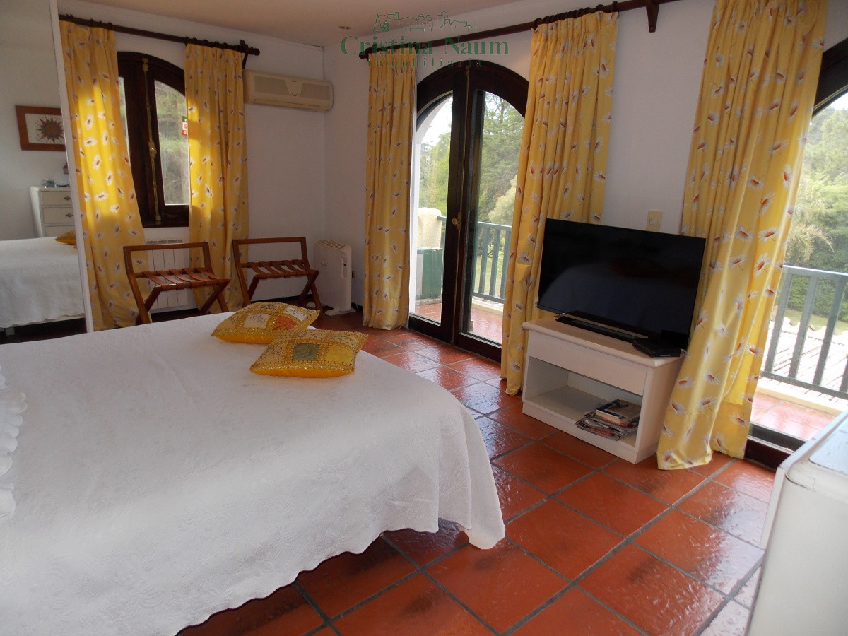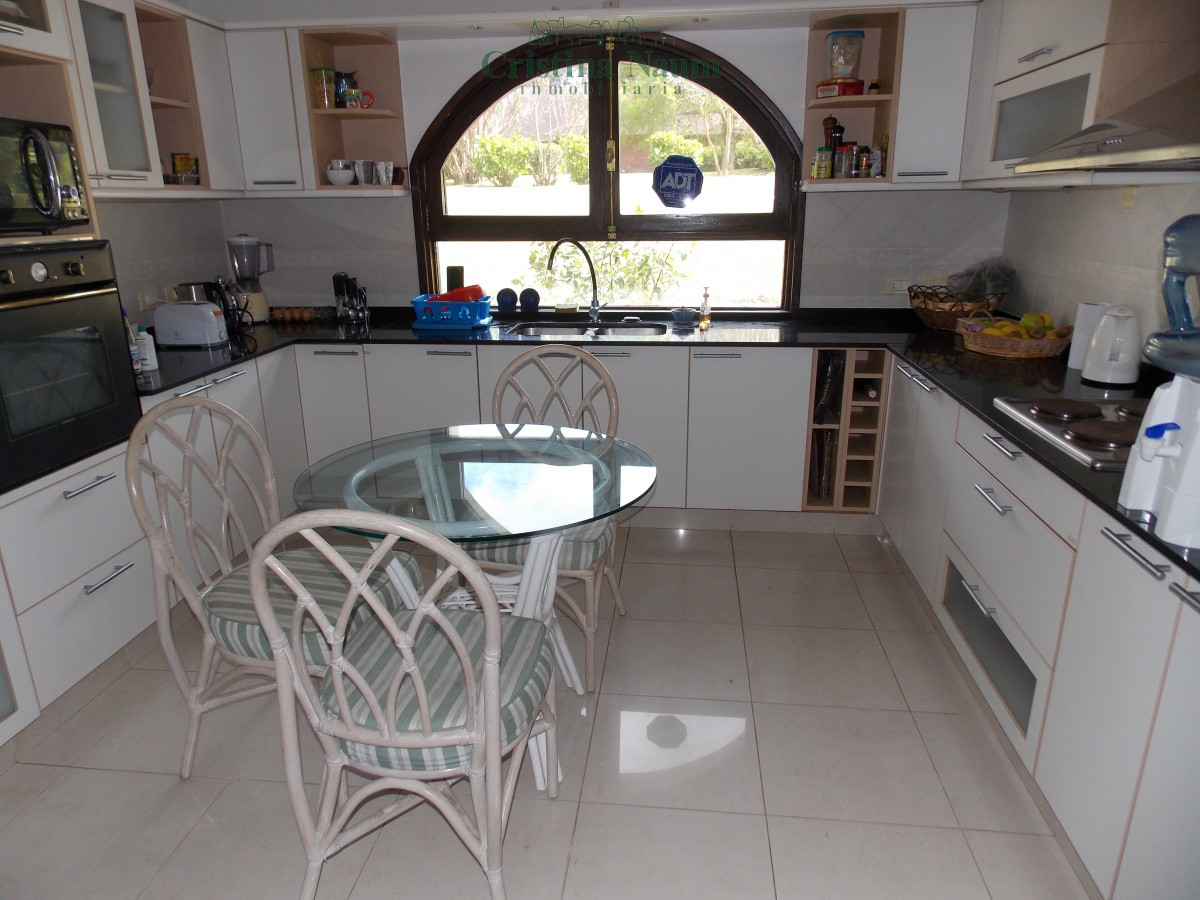Living y comedor separados. 4 dormitorios en suite, toilette y dependencia de servicio exterior. Piscina. Parrillero. Lindísimo parque de 3.700 m2. Cochera.