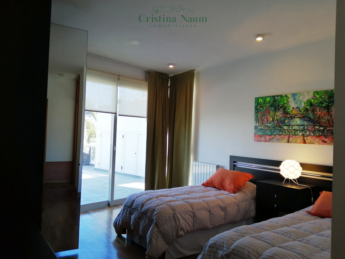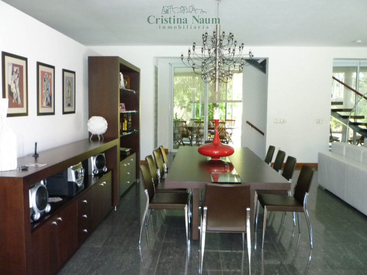 Casa con amplio living y comedor con vista a la piscina, y estar que se comunica con la cocina. En planta baja, cuenta con toilette y, en planta alta, 3 dormitorios, 2 de ellos en suite, y 3 baños en total.