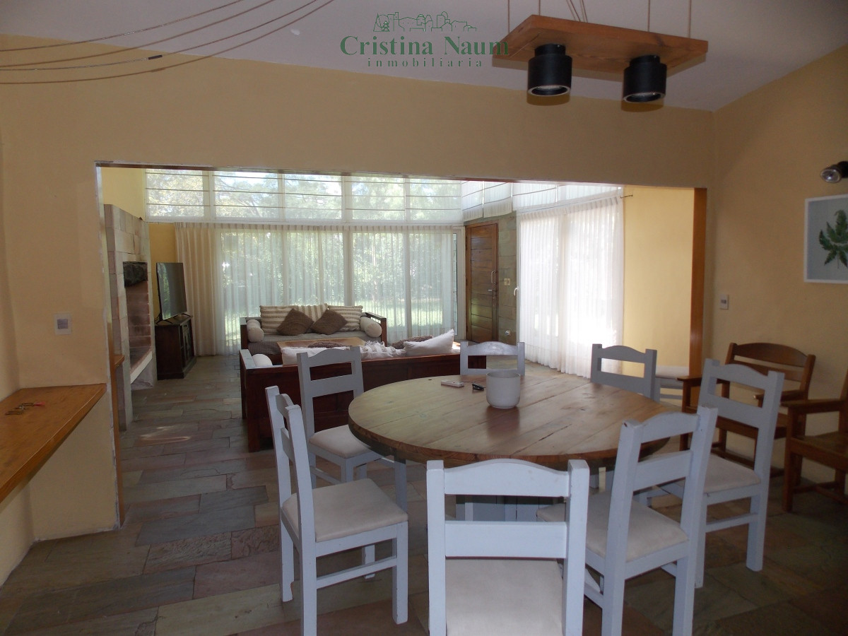 Amplio living comedor con 2 estufas de leña , y aire acondicionado, muy luminoso; grandes ventanales ; cocina con despensa y salida al patio trasero, depósito con salida a la calle de atrás.