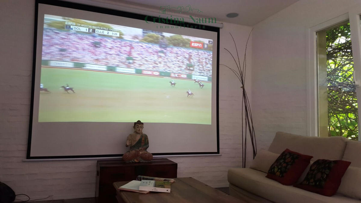 iluminación cenital en todos los ambientes, cine en el hogar en área de living con pantalla de 120 pulgadas¨