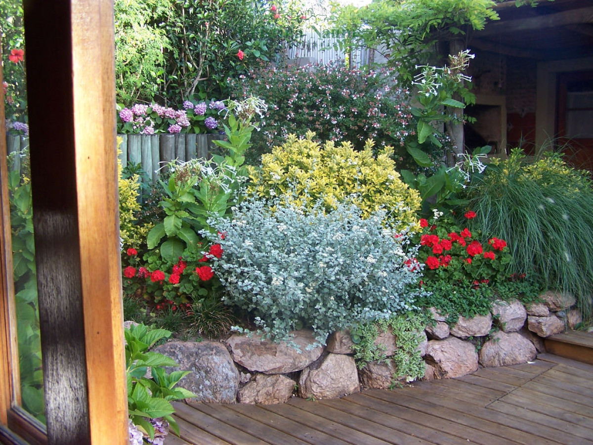 Jardín muy lindo (piscina y amplio deck) con tres áreas bien marcadas,