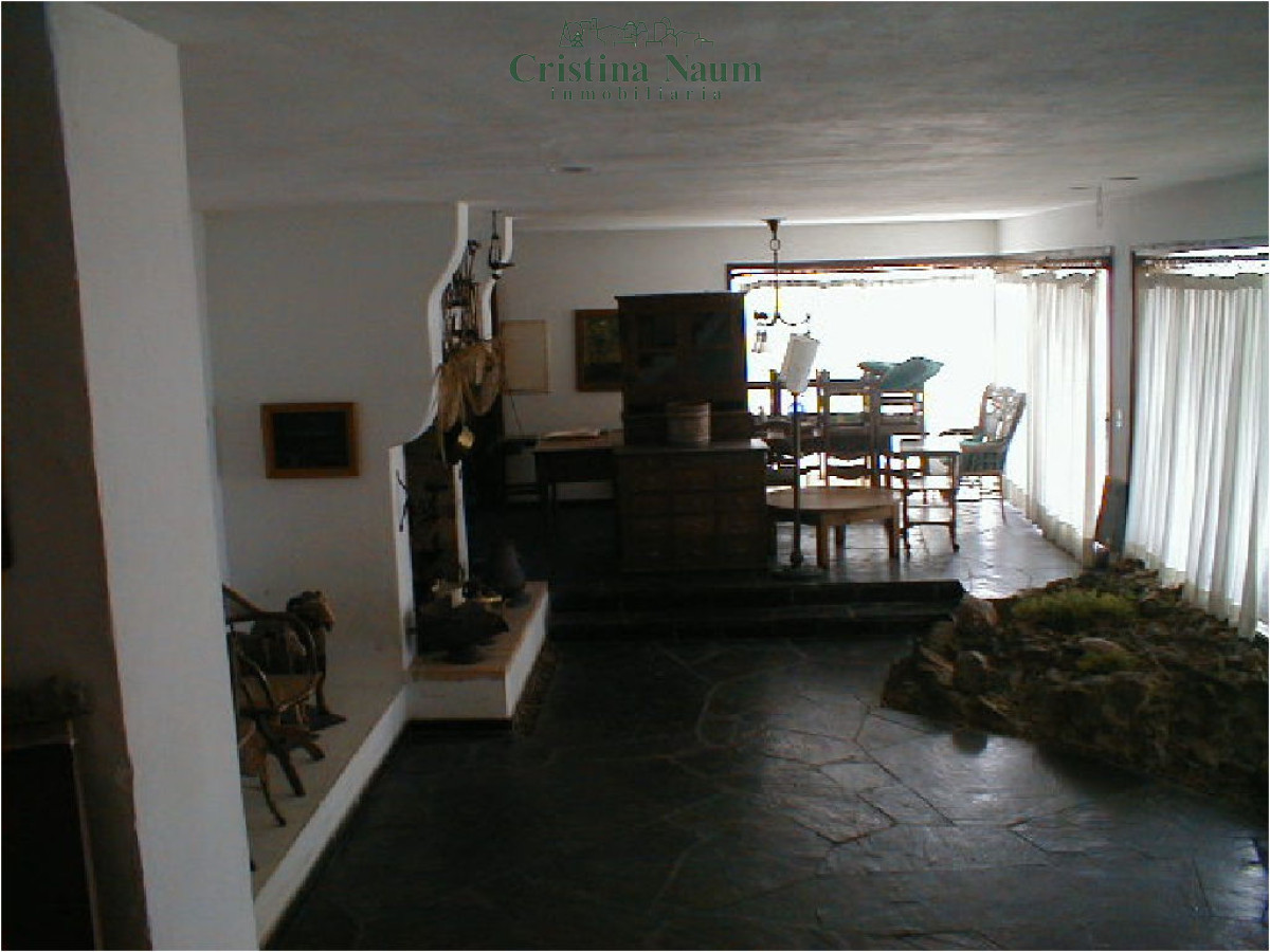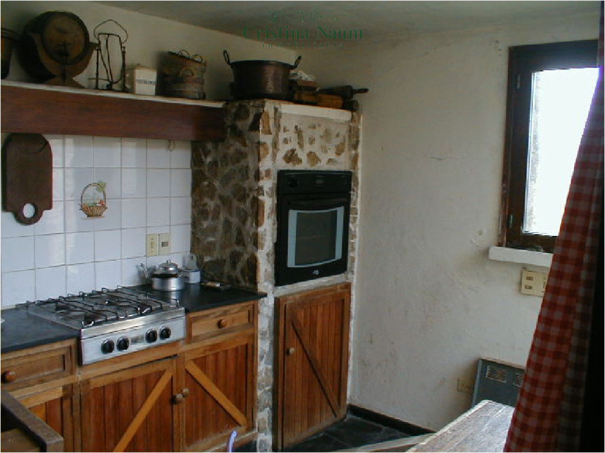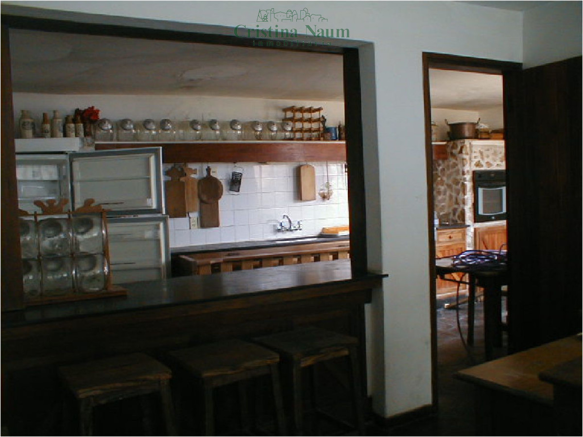 Living, comedor con estufa a leña, cocina.