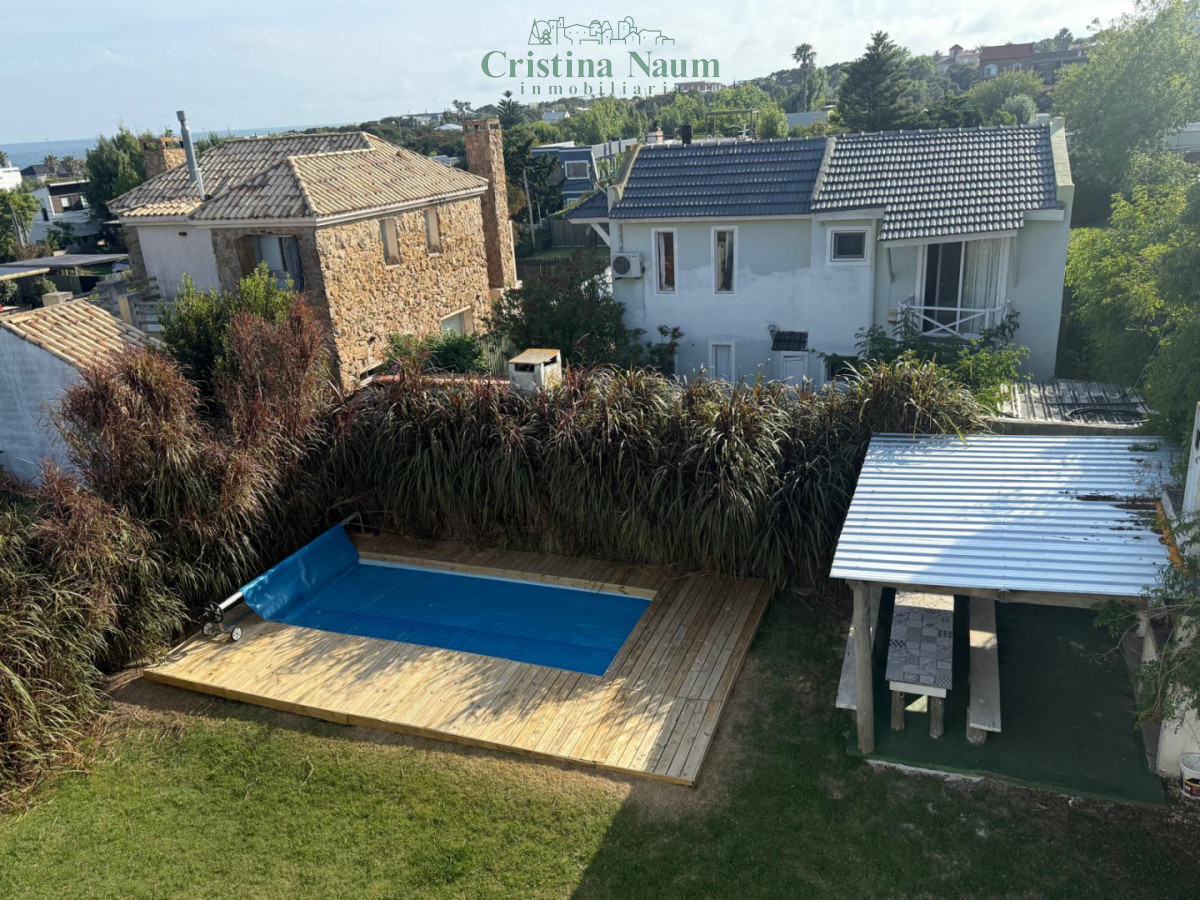 En el techo de la casa tienen solarium con césped artificial deck con piscina - jacuzi, piscina climatizada y parrillero en el parque