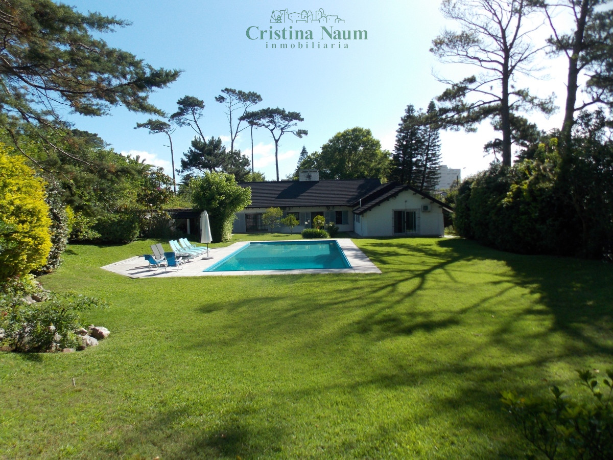 Desarrollada en una planta sobre un terreno de 3.000 m2 a solo 300 mts de la playa. Cuenta con 6 dormitorios, 5 baños, 3 en suite, Living amplio con salida y vista al jardín, cocina reciclada, todos los ambientes amplios e iluminados con grandes ventanales. Gran piscina de 12m x 5m con filtro automático. Parrillero de 7,20m x 6,50m con mesa de madera para 12 a 14 personas. Dependencia de servicio con baño independiente. Muy bien puesta y mantenida. Equipada con aire acondicionado en living y dos dormitorios. Tv Smart y wiffi.