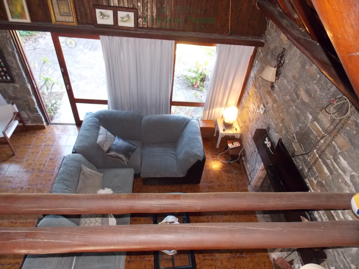 PB: living con estufa a leña -comedor - cocina - 1 dormitorio en suite con 1 baño y otro baño en el pasillo para el dormitorio que se encuentra en planta alta .